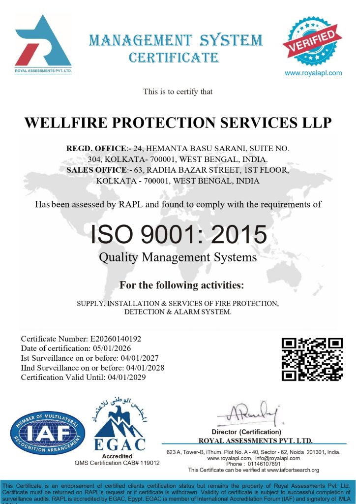 Wellfire Protection Services LLP, started providing a wide range of solutions with the help of a professionally qualified team in the area of life and property safety in accordance with standards / regulations viz. NBC, TAC and other relevant authorities, early in 2011. Promoted by Wellwater Services Pvt. Ltd. (a forty three years old company providing water management services), Wellfire Protection Services LLP, have expertise in executing turnkey projects right from- Consultancy, Design, Detailed Engineering, supply Installation, Testing & Commissioning of Fire Protection and Detection system. We have dedicated team of highly efficient engineers and technocrats who work in close collaboration with Clients and design the solutions which are tailor made to suit the product / process requirement of our Clients. From planning and installation to maintenance, user support to training, we guarantee a comprehensive range of products and services.